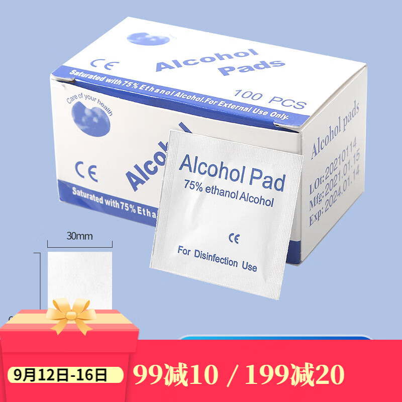 AL-NASR 旅行居家办公100片一次性75%度消毒棉棒大号湿巾手机餐具首饰清洁 (6*6cm)100片/盒
