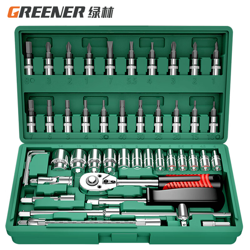 绿林专业汽修工具套装套筒扳手工具箱套装小飞棘轮快速扳手套管套头修车汽车修理五金工具