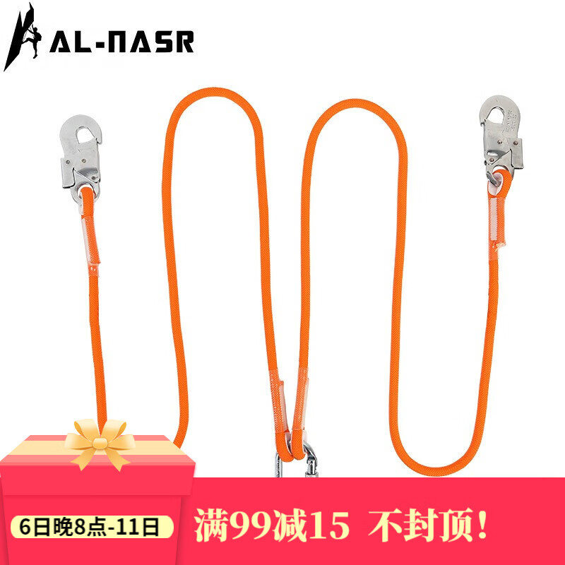 阿尔纳斯/AL-NASR 蹬杆安全绳电工安全绳高空作业安全绳耐磨工地施工保险带安装安全绳电工保护带 双绳双大钩3米