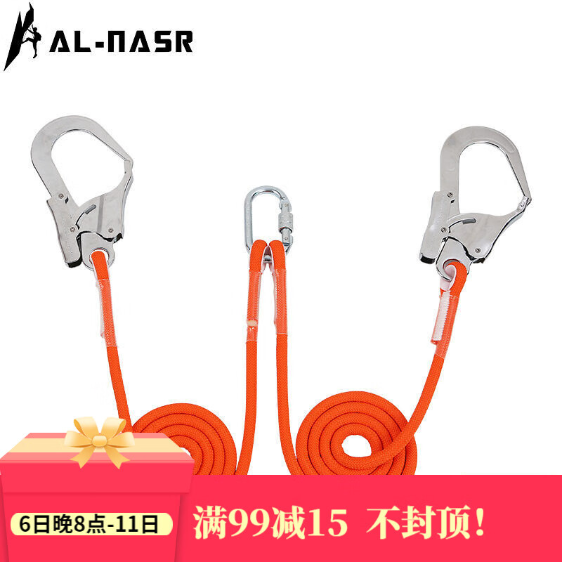 阿尔纳斯/AL-NASR 蹬杆安全绳电工安全绳高空作业安全绳耐磨工地施工保险带安装安全绳电工保护带 中钩双绳3米