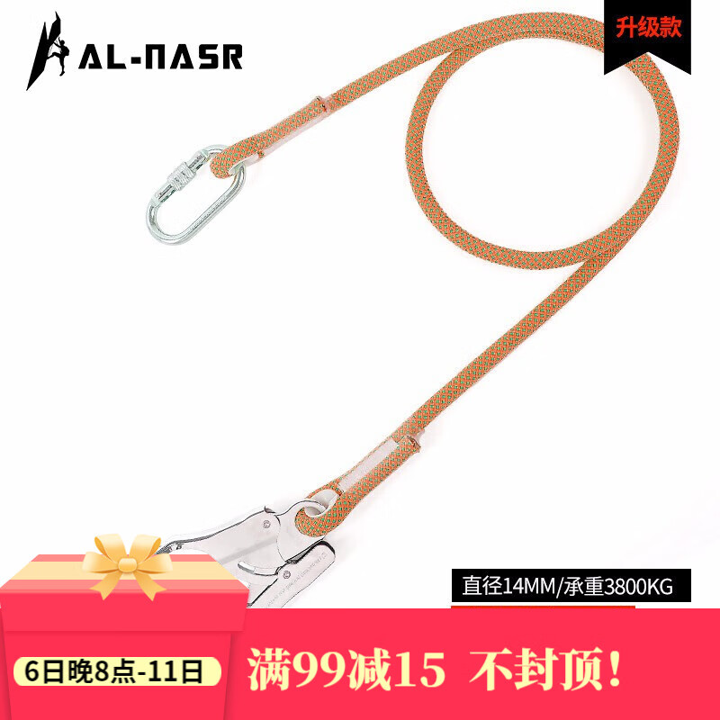 阿尔纳斯/AL-NASR 蹬杆安全绳电工安全绳高空作业安全绳耐磨工地施工保险带安装安全绳电工保护带 大钩单绳3米