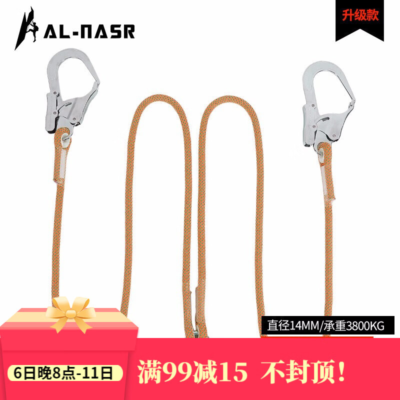 阿尔纳斯/AL-NASR 蹬杆安全绳电工安全绳高空作业安全绳耐磨工地施工保险带安装安全绳电工保护带 升级款-双绳大钩3米