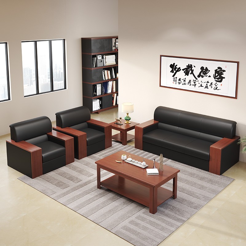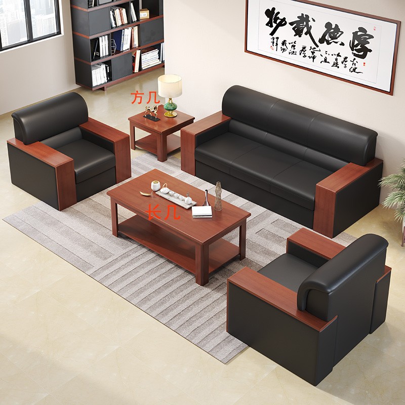 洛来宝 办公沙发茶几组合简约现代木质办公室沙发商务接待会客沙发 1+1+方茶几