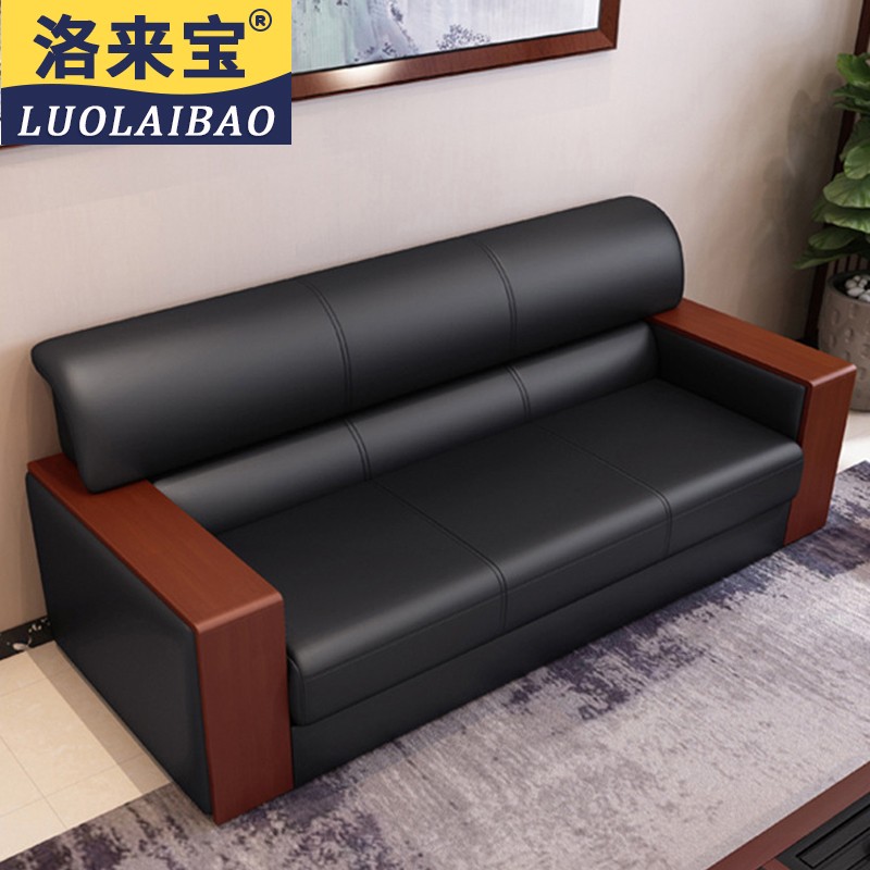 洛来宝 办公家具沙发办公室接待室沙发办公室简约 商务沙发会客洽谈沙发 牛皮三人位