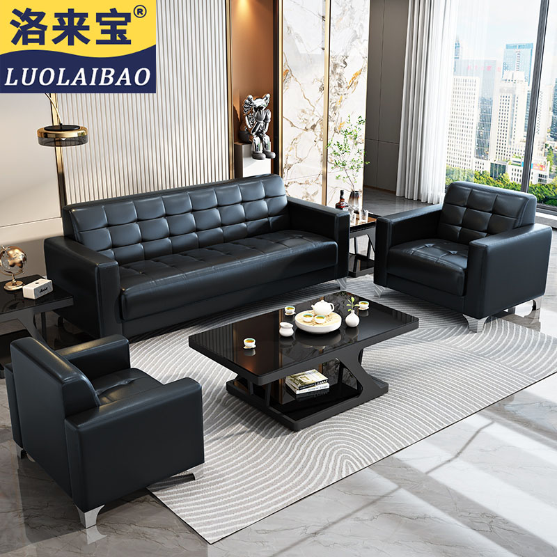 洛来宝 办公沙发 办公室沙发简约商务皮沙发商务沙发会客接待洽谈沙发 牛皮3+1+1