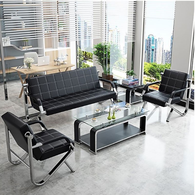 洛来宝 办公沙发茶几组合商务简约钢架三人沙发办公家具接待洽谈会客沙发 3+1+1