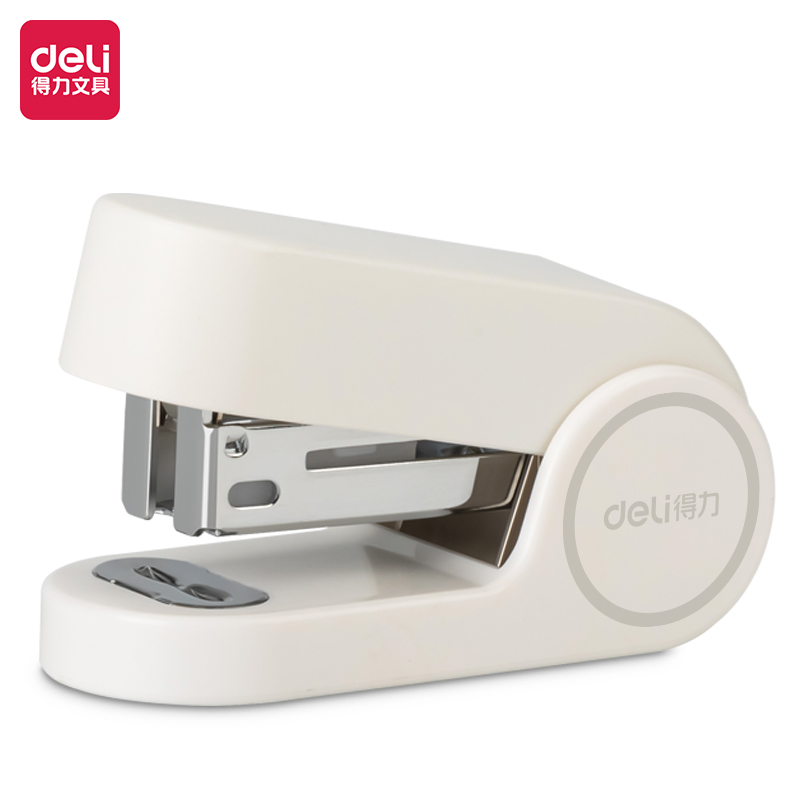 得力(deli)省力型订书机/订书器 适配24/6,26/6及24/8订书钉 办公用品 白色0371