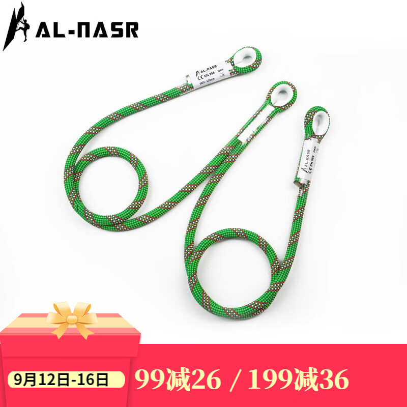 阿尔纳斯 攀岩牛尾绳登山保护绳防坠落动力牛尾挽索户外安全装备 V字绿色-100cm