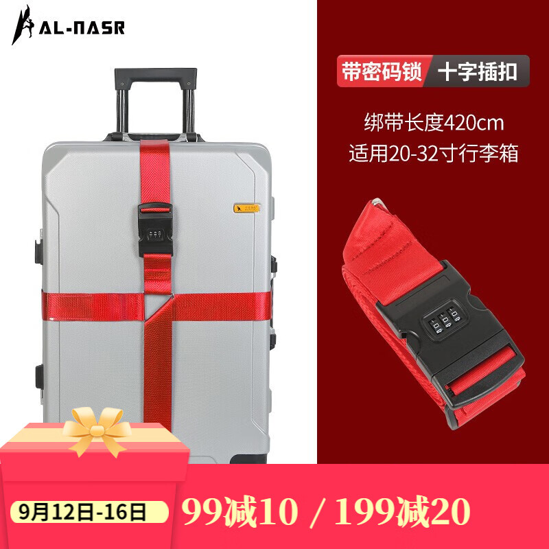 AL-NASR/阿尔纳斯 行李箱绑带十字打包带托运旅游箱子带绳子防盗密码锁加固带捆绑绳 密码锁/十字插扣/红色