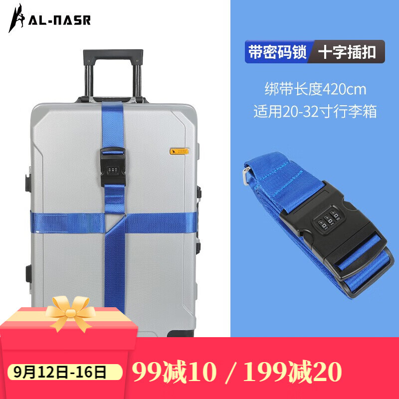AL-NASR/阿尔纳斯 行李箱绑带十字打包带托运旅游箱子带绳子防盗密码锁加固带捆绑绳 不带锁/十字插扣/蓝色