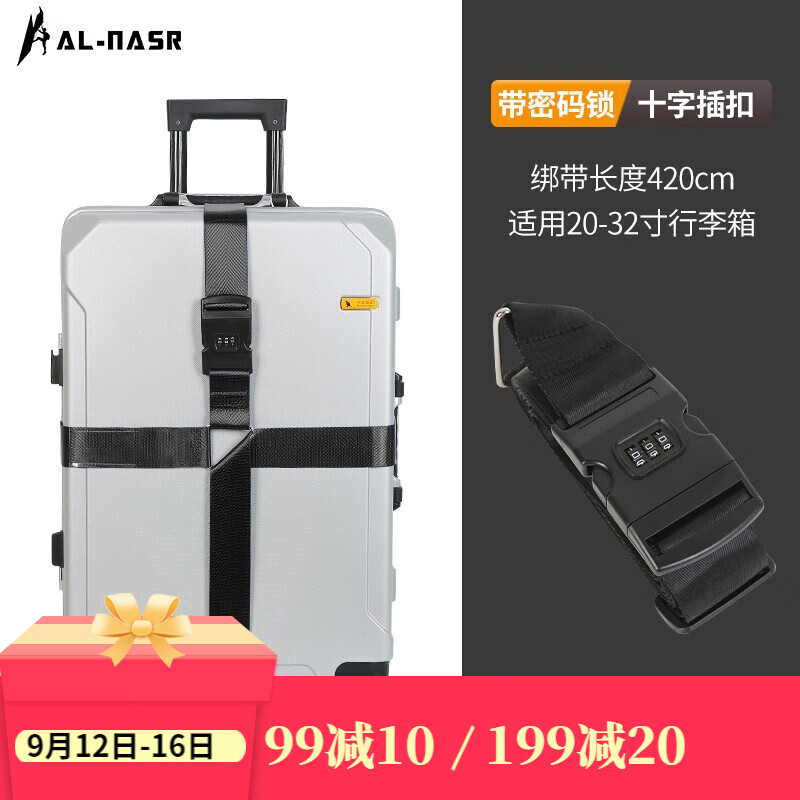 AL-NASR/阿尔纳斯 行李箱绑带十字打包带托运旅游箱子带绳子防盗密码锁加固带捆绑绳 密码锁/十字插扣/黑色