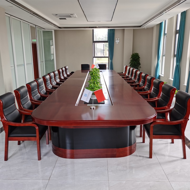 洛来宝 大型会议桌多媒体贴实木皮会议台油漆椭圆形洽谈办公会议桌10米