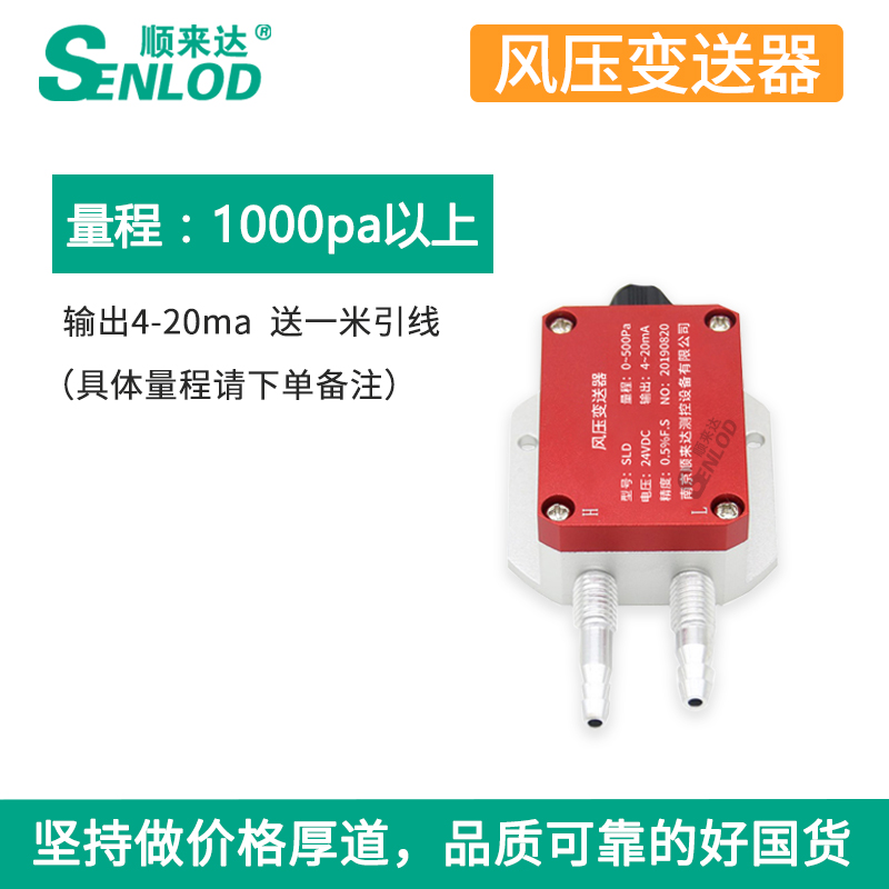 顺来达风压变送器传感器数显微压差传感器 风管压力差压计4-20ma/RS485 量程1000pa以上 4-20mA