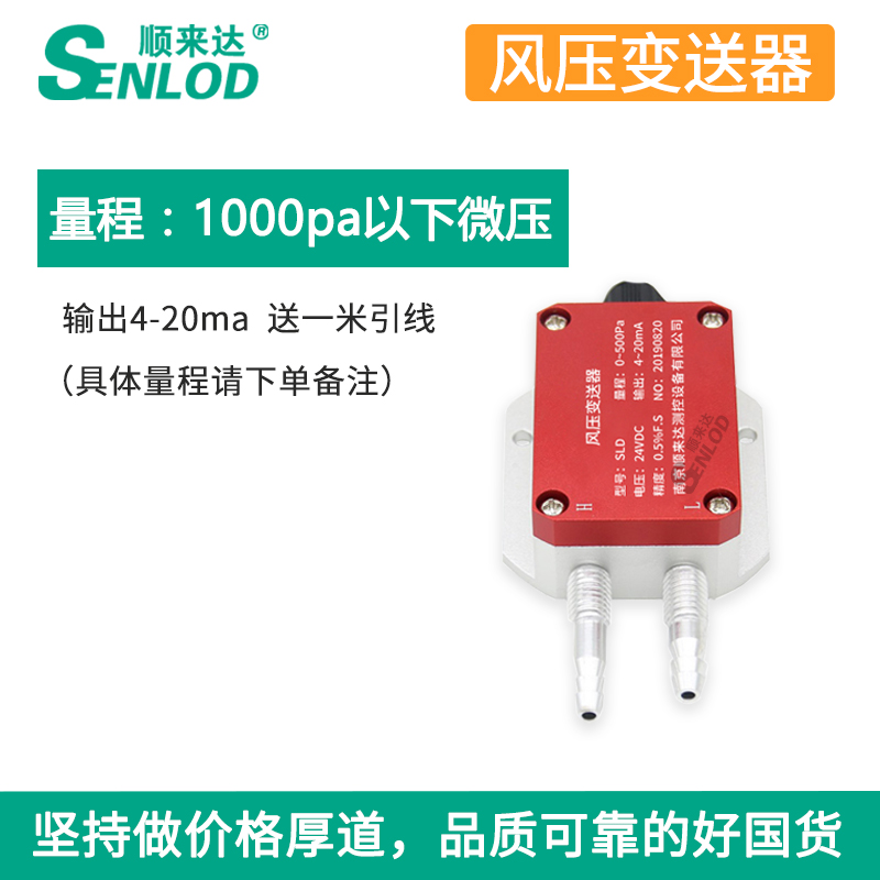 顺来达风压变送器传感器数显微压差传感器 风管压力差压计4-20ma/RS485 微压量程1000pa以下 4-20mA
