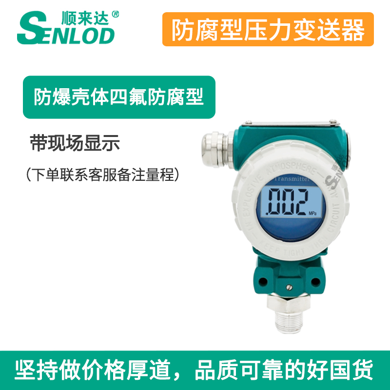 顺来达 四氟防腐型压力变送器电容式压力传感器油压气压液压水压传感器 防爆壳体四氟防腐型 带现场显示