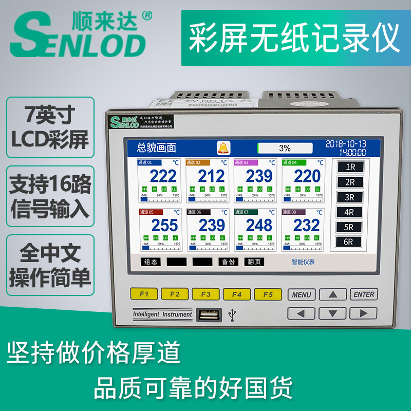 顺来达(SENLOD) 无纸记录仪LSR7000彩屏多通道记录仪多路压力电流电压温湿度 【可扩展至16路】每增加一通道加价