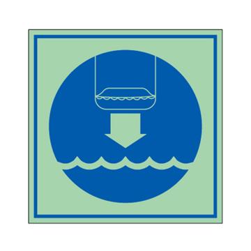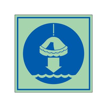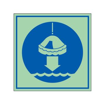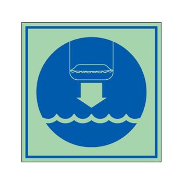 安赛瑞 船用IMO安全标识-将救生筏降至水面,自发光板,150×150mm,21036