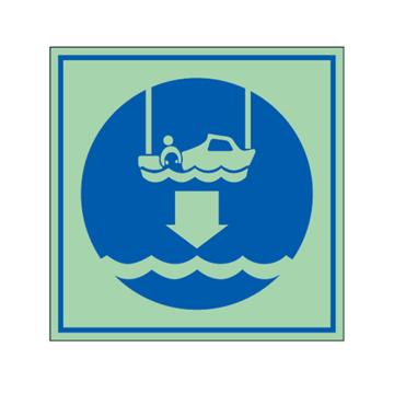安赛瑞 船用IMO安全标识-将救助艇降至水面,自发光板,150×150mm,21038
