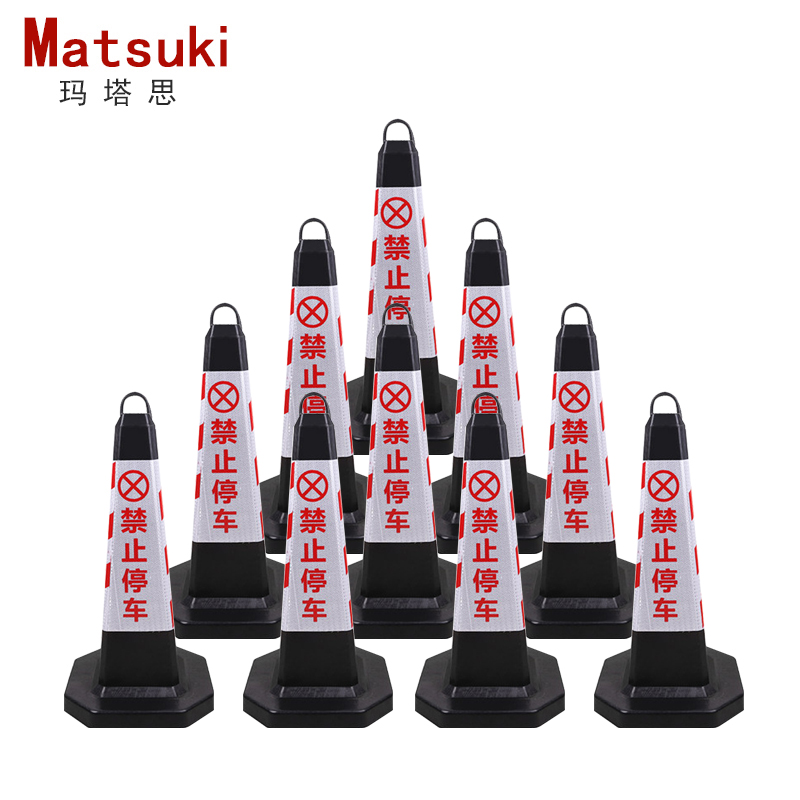 Matsuki玛塔思 橡胶路锥高反光方锥请勿泊车牌专用车位路障警示柱交通设施70cm雪糕筒 6斤黑黄禁止停车10个装