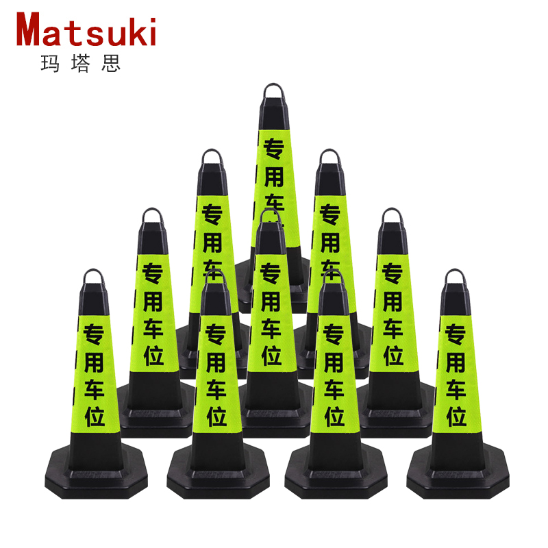 Matsuki玛塔思 橡胶路锥高反光方锥请勿泊车牌禁止停车路障警示柱交通设施70cm雪糕筒 6斤黑黄专用车位10个装