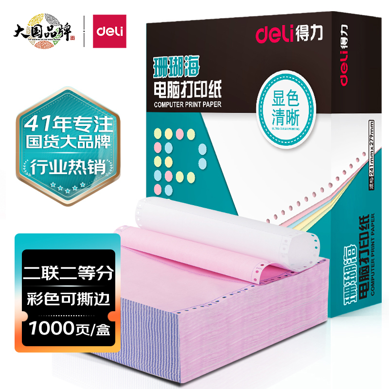 得力(deli)珊瑚海打印纸 二联二等分针式打印纸 可撕边电脑打印纸 彩色(白红)送货单 1000页241-2-1/2CS
