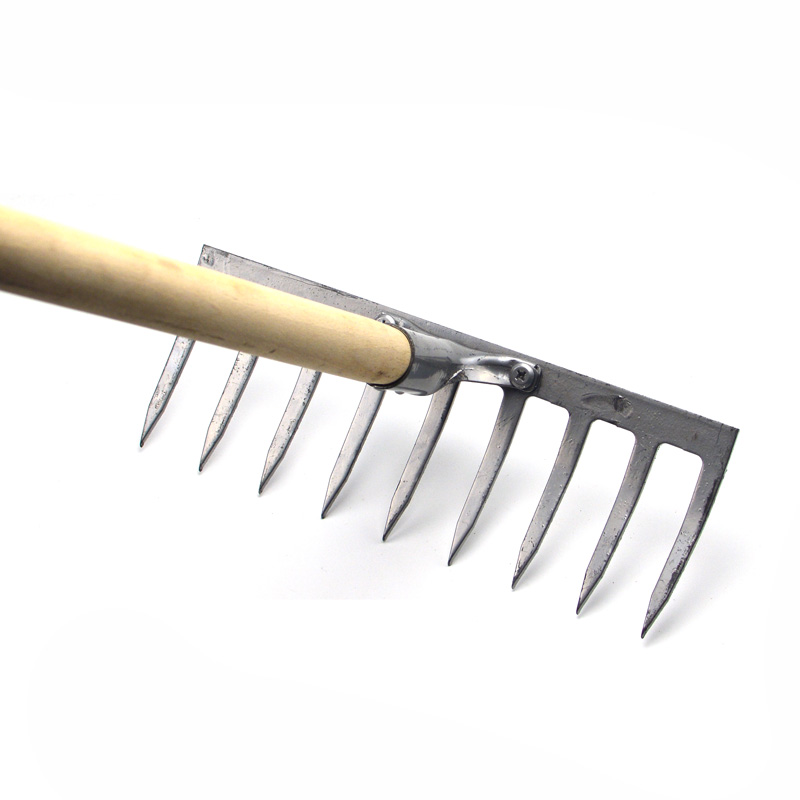 立锦 锰钢9齿钉耙,1.2米木柄,农具草耙子 九齿耙 松土铁耙落叶耙 农用园艺工具种菜 锰钢九齿耙