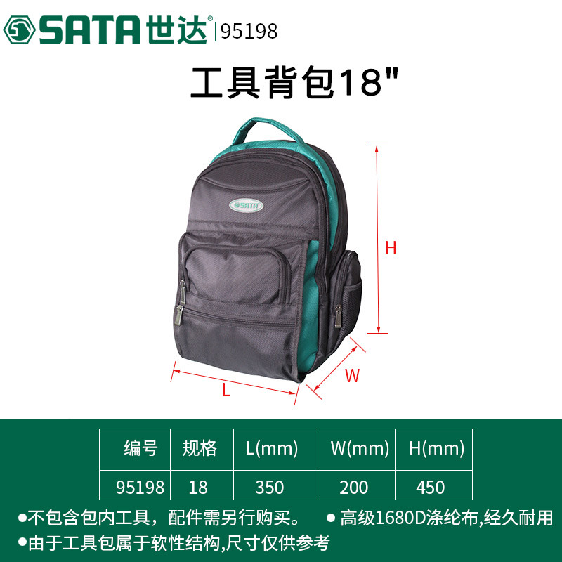 定制世达多功能维修安装水电工双肩单肩背大容量工具包手提式拉杆腰包 95198/工具背包【18寸】