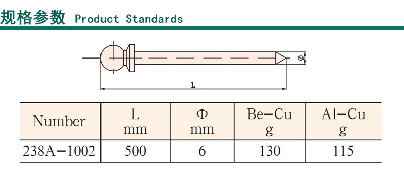 桥防 防爆球头听针,铍青铜,Φ6*500mm,238A-1002BE