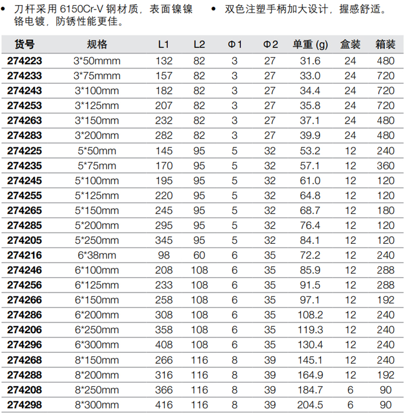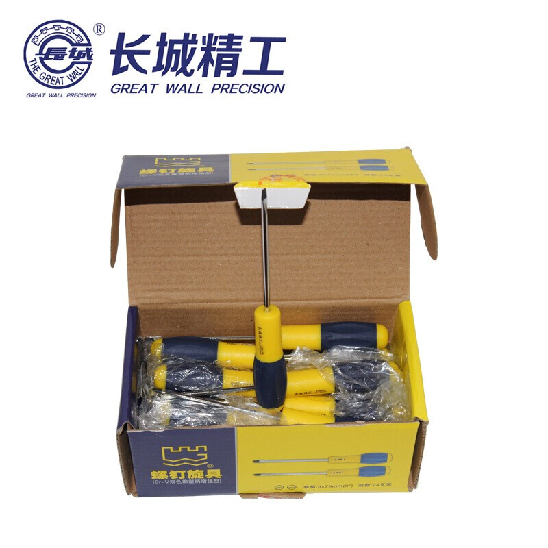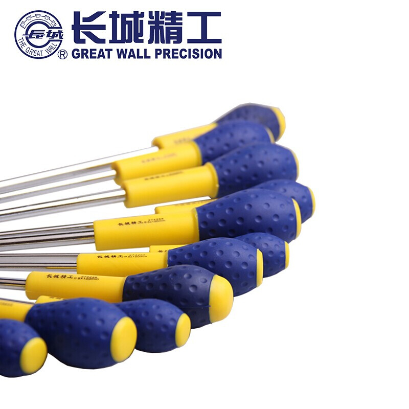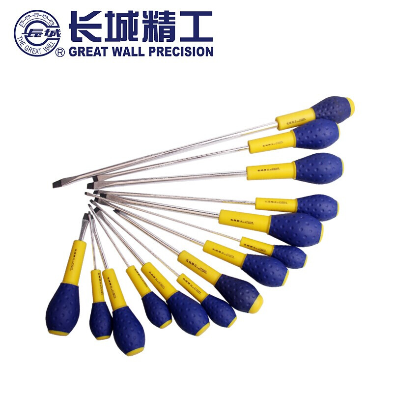 长城精工的气动螺丝刀长城精工Cr-V5*100mm双色橡塑柄鱼雷型一字头螺丝刀274245