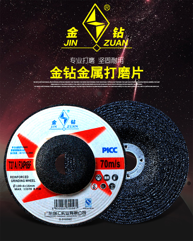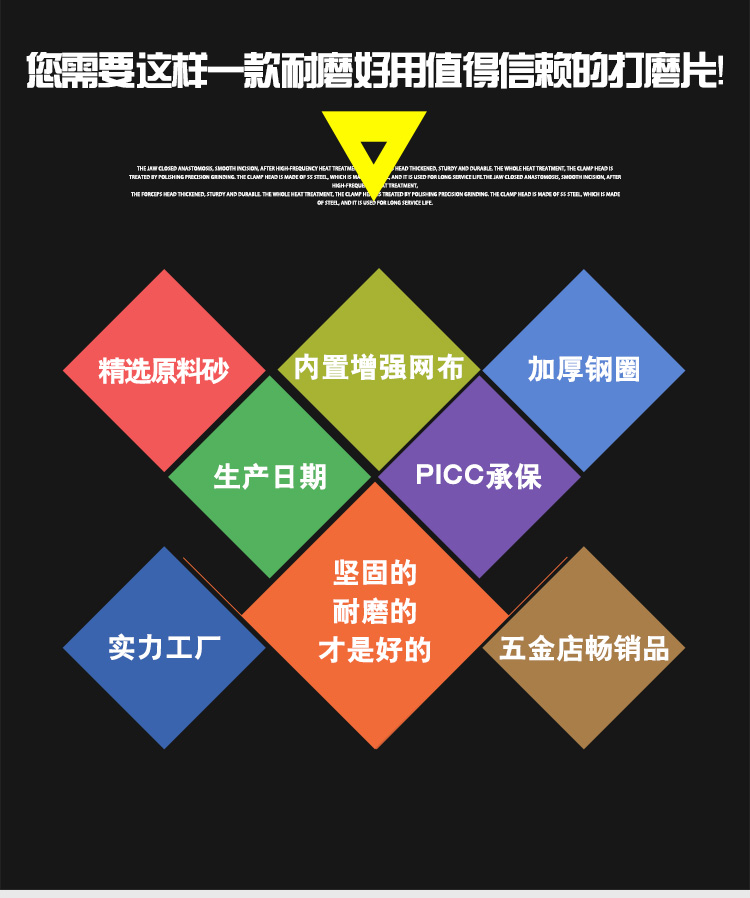 迪克立的气动修磨及抛光工具迪克立金钻磨光片100打磨除锈加厚磨砂角磨机磨片100*6