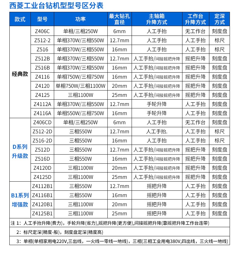 西菱的气钻西菱工业级D系列台钻高精度重型钻孔机多功能台式钻床Z4116
