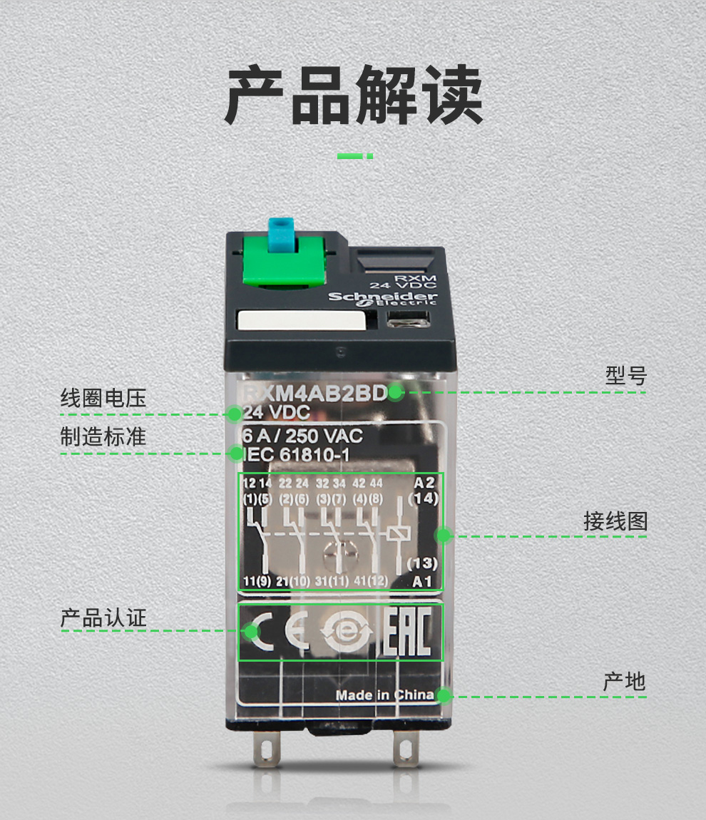艾逊订货号:D1003631 原始型号:RXM4AB2P7 品牌:Schneider/施耐德 品牌所属地:中国
