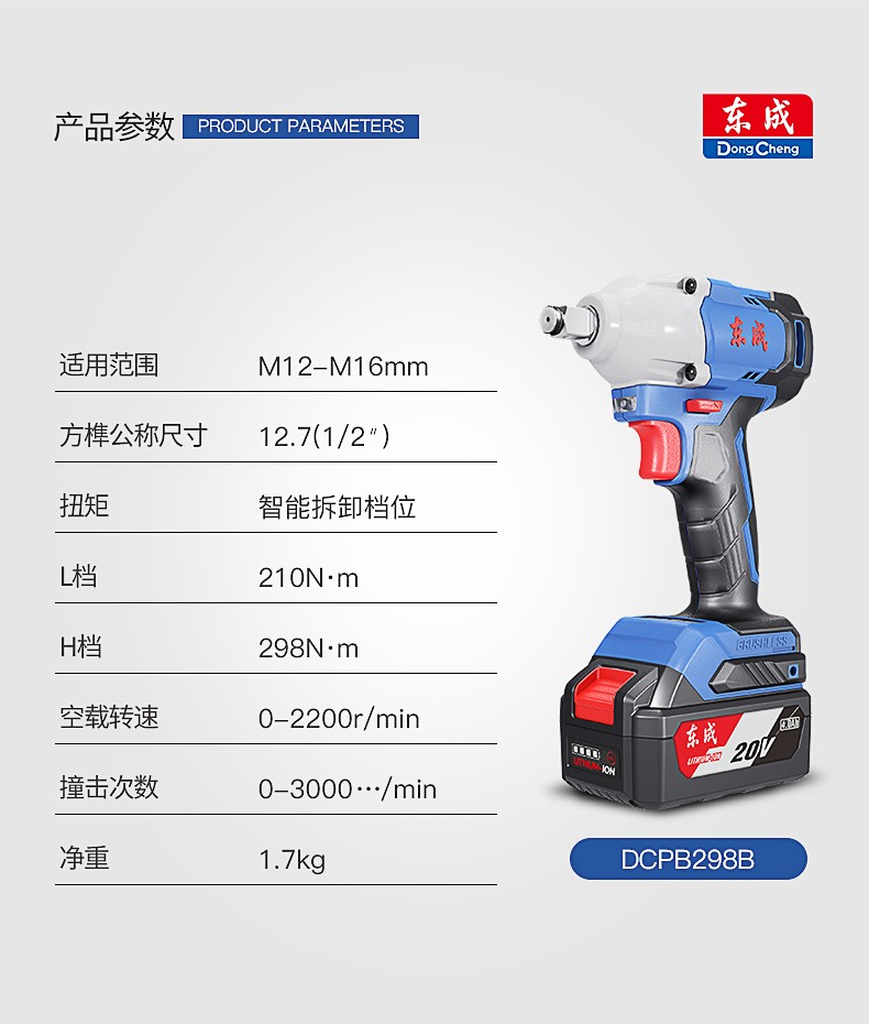 Dongcheng/东成的充电式电动工具充电式无刷冲击扳手DCPB02-18E