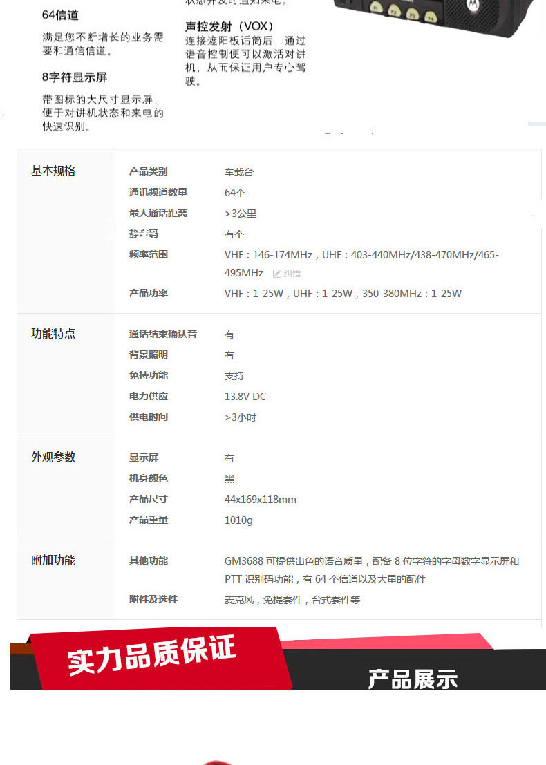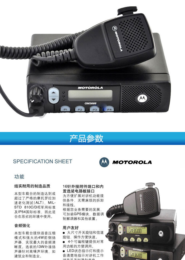 艾逊订货号:H1001258 原始型号:Motorola GM3688 品牌:Motorola/摩托罗拉 品牌所属地:中国