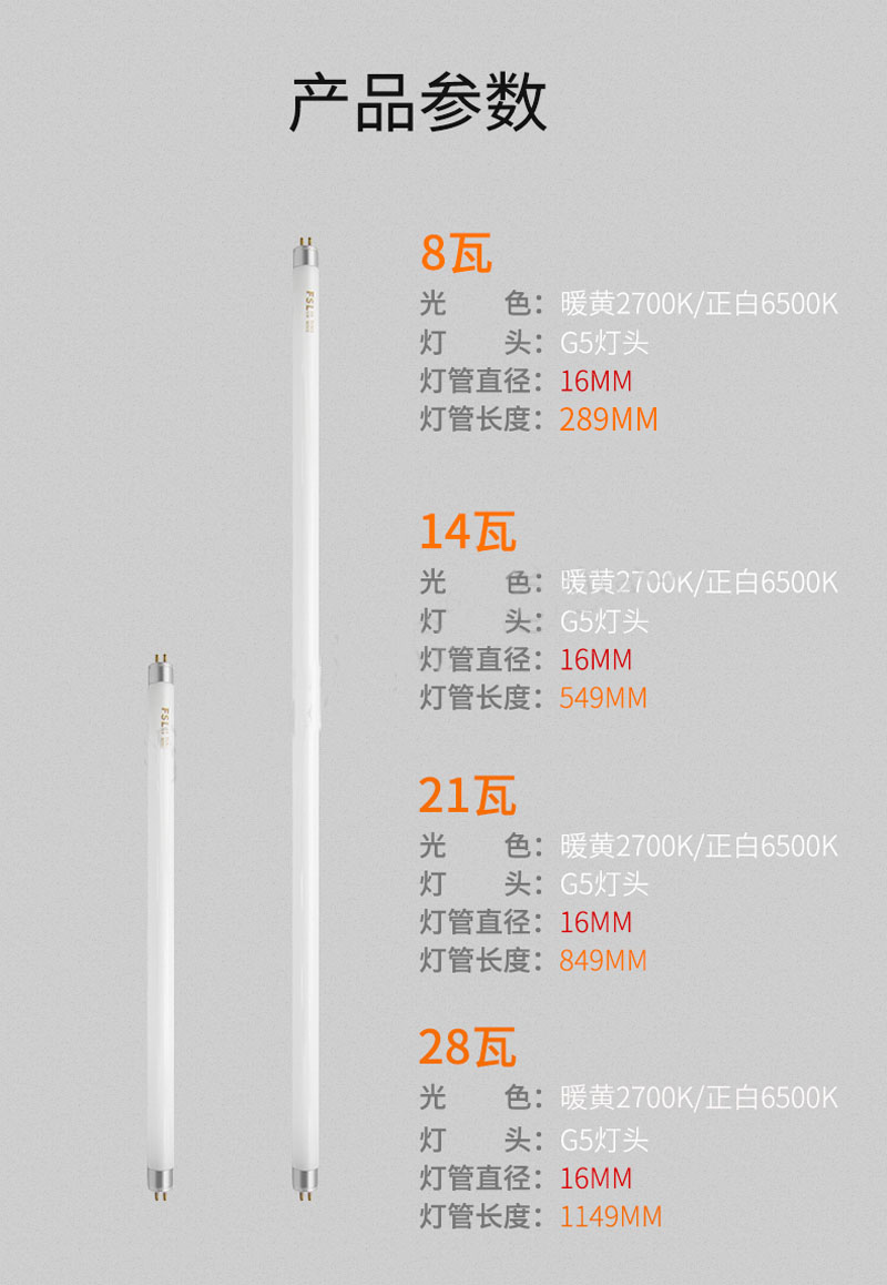 佛山照明/FSL的荧光灯T5高效节能双端荧光灯管28W1149mm6500K
