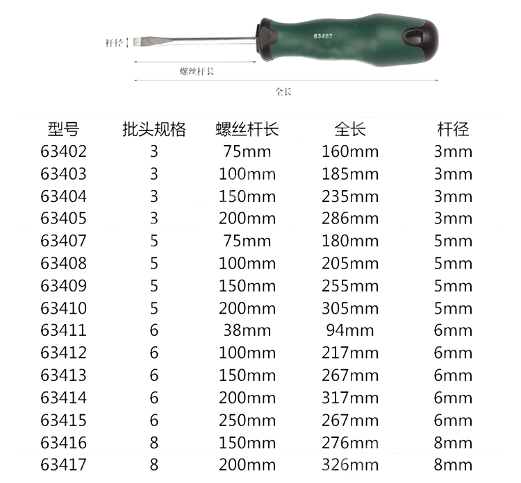 SATA/世达的螺丝批一字螺丝批橡塑柄6X150m63413
