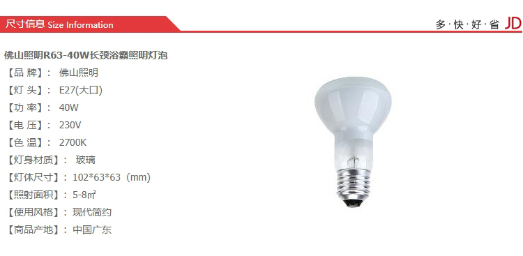 艾逊订货号:D1004024 原始型号:220V40WE27 品牌:佛山照明/FSL 品牌所属地:中国