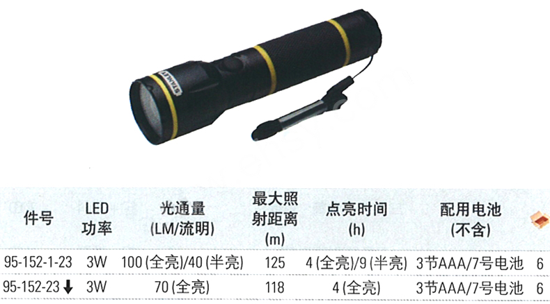 STANLEY/史丹利的手电筒LED超亮铝合金手电筒超亮调焦3W适配3节7号电池