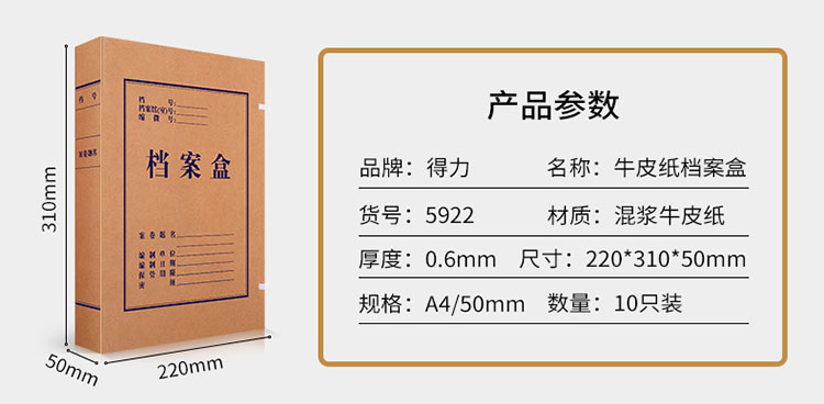 deli/得力的文件管理用品高质感牛皮纸档案盒5922A4/50mm