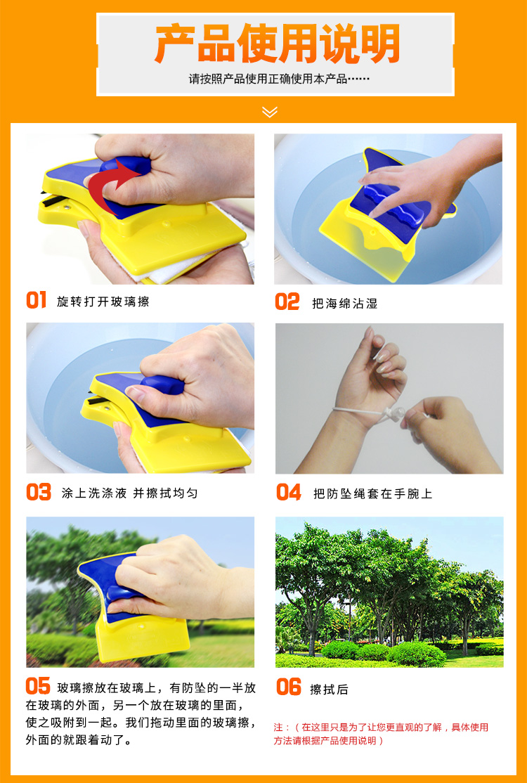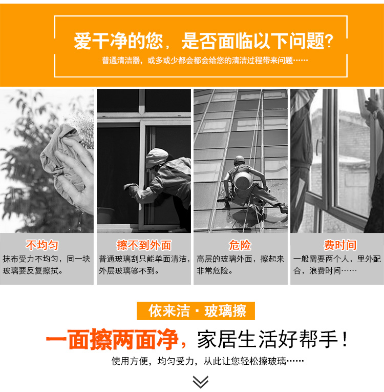 依来洁的玻璃清洁工具双面玻璃清洁器D型3-5mm