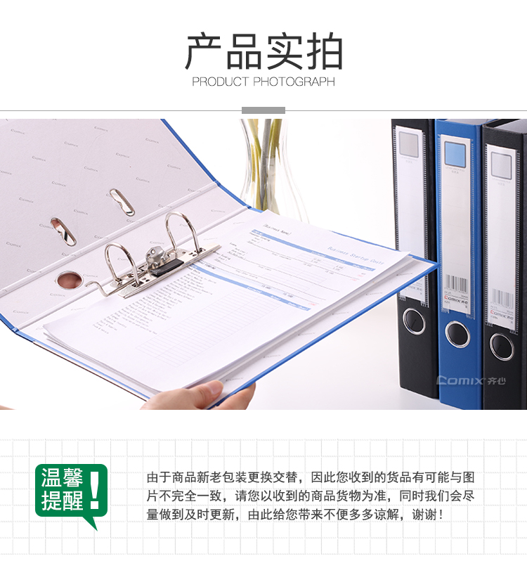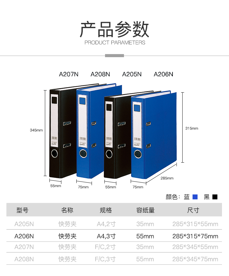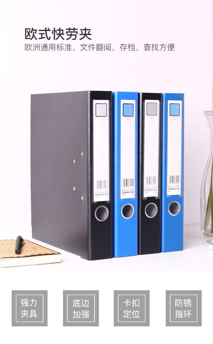 艾逊订货号:H1001694 原始型号:齐心(Comix) A206N 加厚净重450g A4 3英寸PVC快劳夹/文件夹 黑色 办公文具 品牌:齐心 品牌所属地:中国