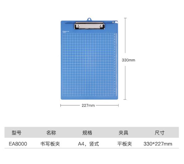 艾逊订货号:H1001717 原始型号:齐心(Comix) A4带刻度金属强力夹书写板夹文件夹EA8000 品牌:齐心 品牌所属地:中国