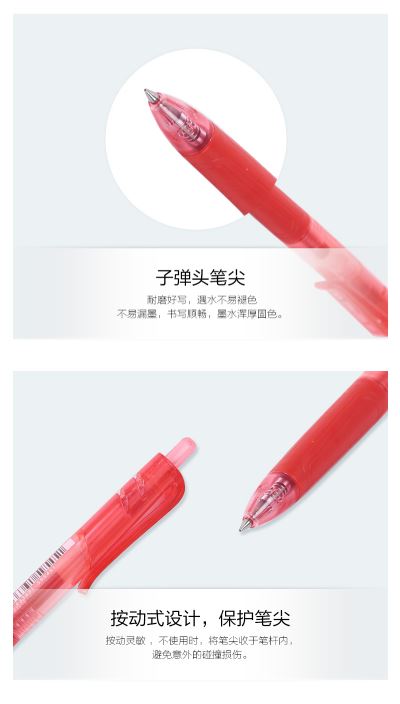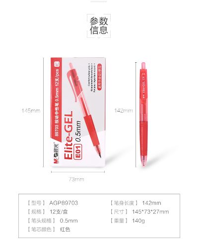 艾逊订货号:H1001774 原始型号:晨光(M&G)文具0.5mm红色中性笔 按动子弹头签字笔 AGP89703 品牌:晨光 品牌所属地:中国