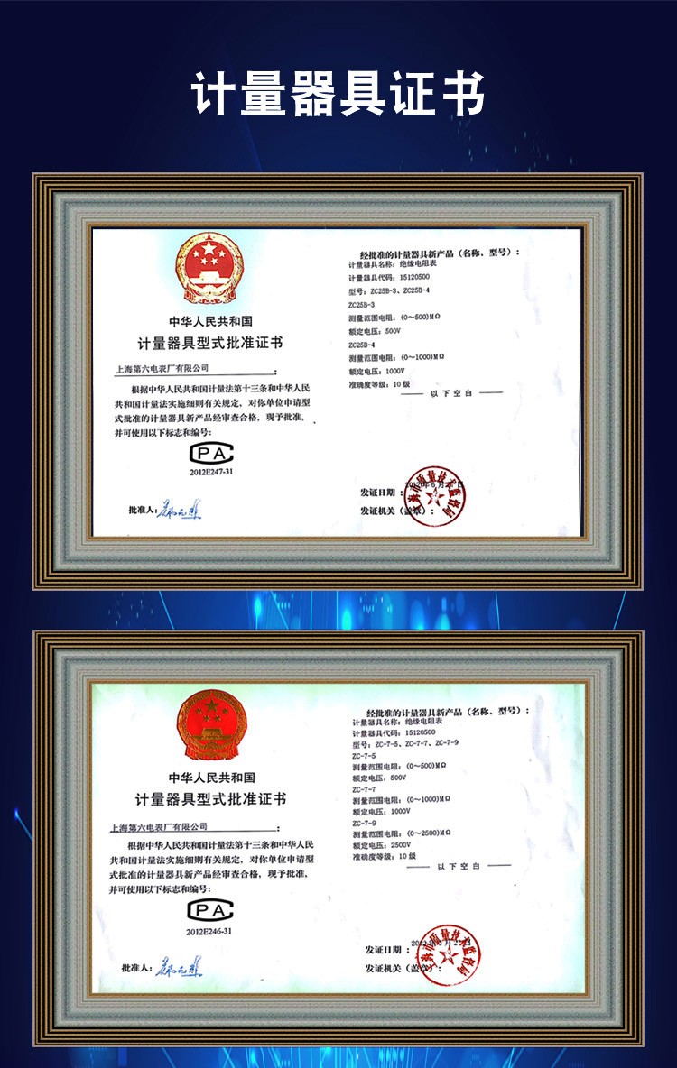 梅格 绝缘兆欧表,ZC-7 500V/1000MΩ. |