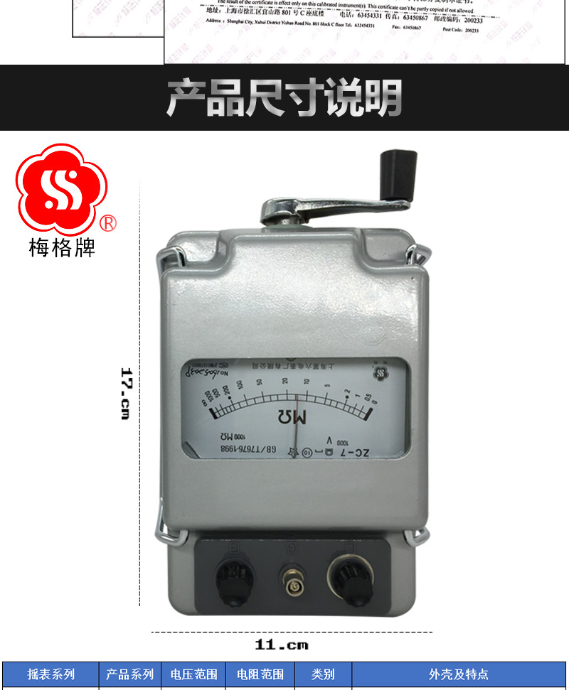梅格 绝缘兆欧表,ZC-7 2500V/5000MΩ |