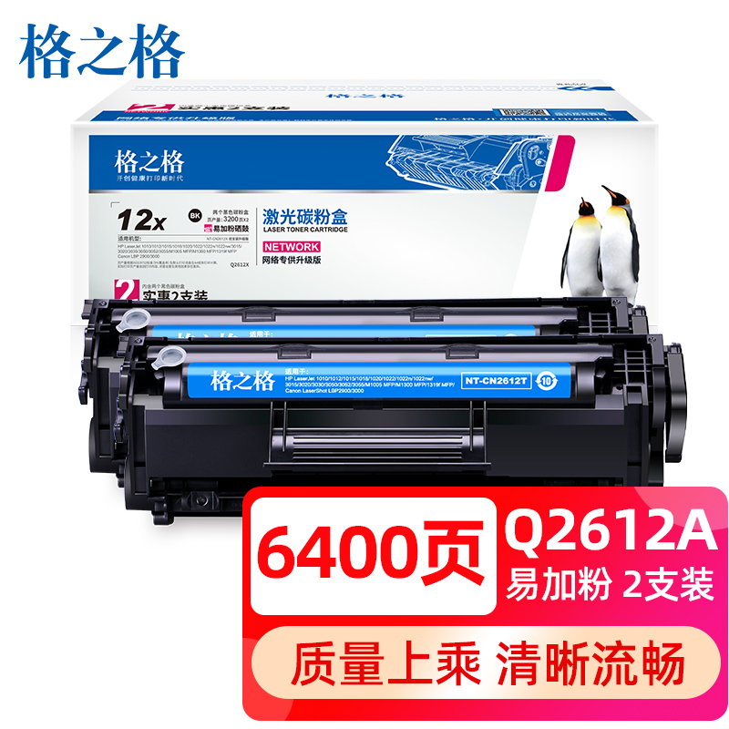 格之格 硒鼓,NT-CN2612T升级版 适用HP 1010/1012/1015/1018/1020/1022/1022n/1022nw/3015/3020 1盒 |