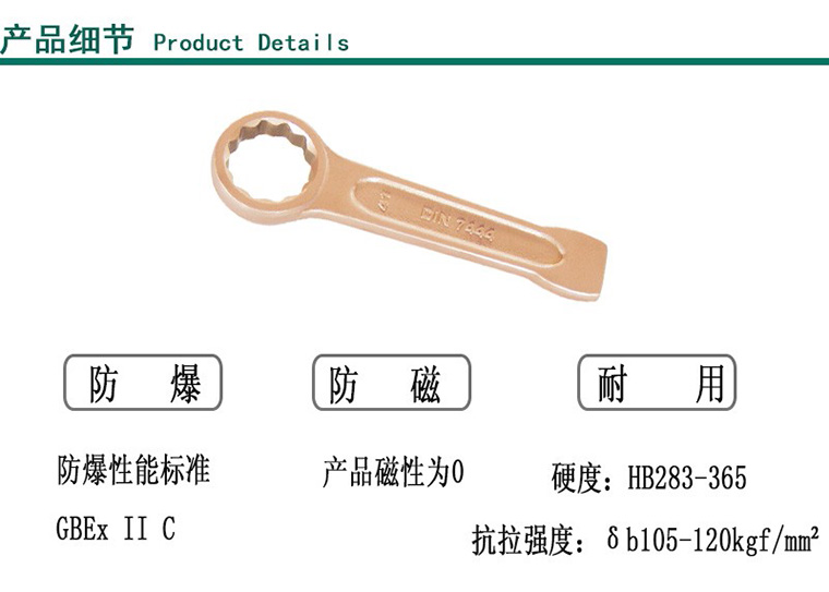 CNFB/桥防 160系列铍青铜防爆敲击梅花扳手 T8160-120-BE 120mm 1把 |