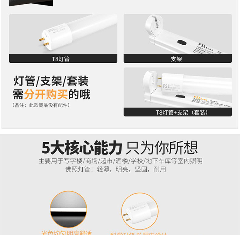 艾逊订货号:E1001951 原始型号:FSL佛山照明 LED玻璃照明灯管 T8长条日光灯 0.6m 10W 品牌:佛山照明/FSL 品牌所属地:中国
