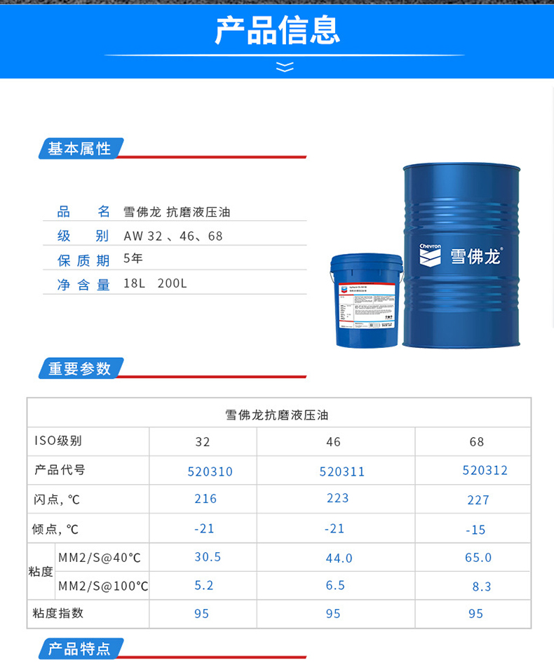 雪佛龙(原加德士) 抗磨液压油,AW 32,200L/桶 |