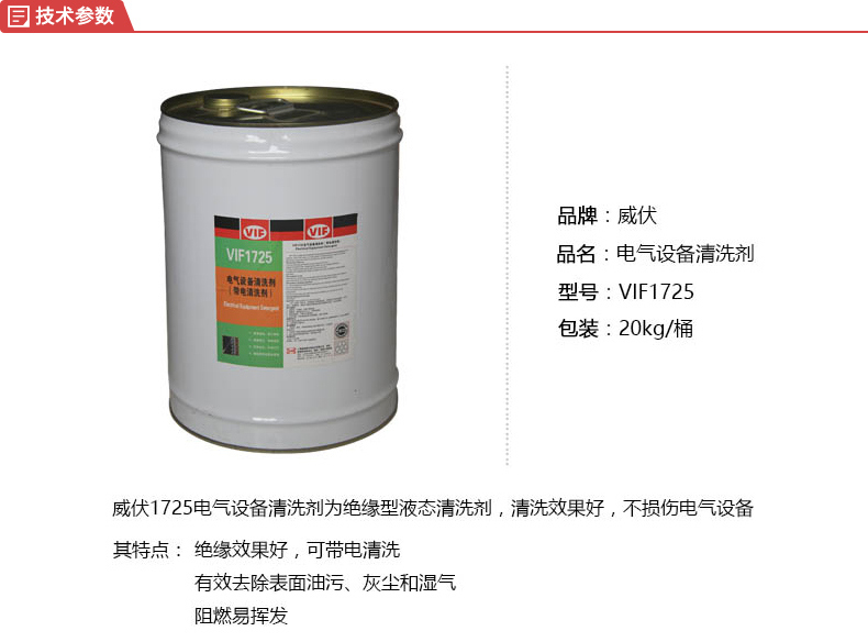 VIF/威伏的工业清洗剂威伏电气设备清洗剂,威伏1725,20kg/桶【电气设备清洗】